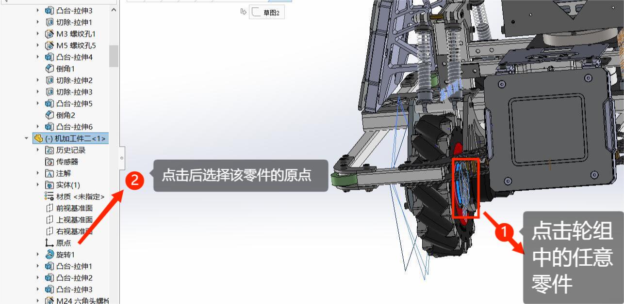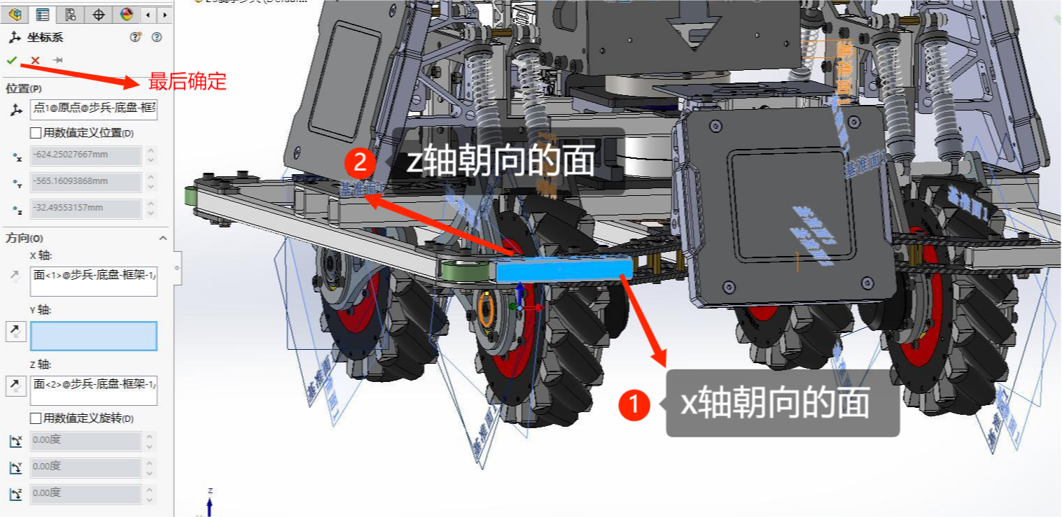 这时可以看到原点出现在轮组中心,确定坐标轴原点位置正确