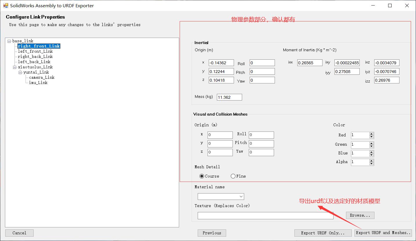 确认完毕后可以进行URDF的导出,点击 Export as URDF