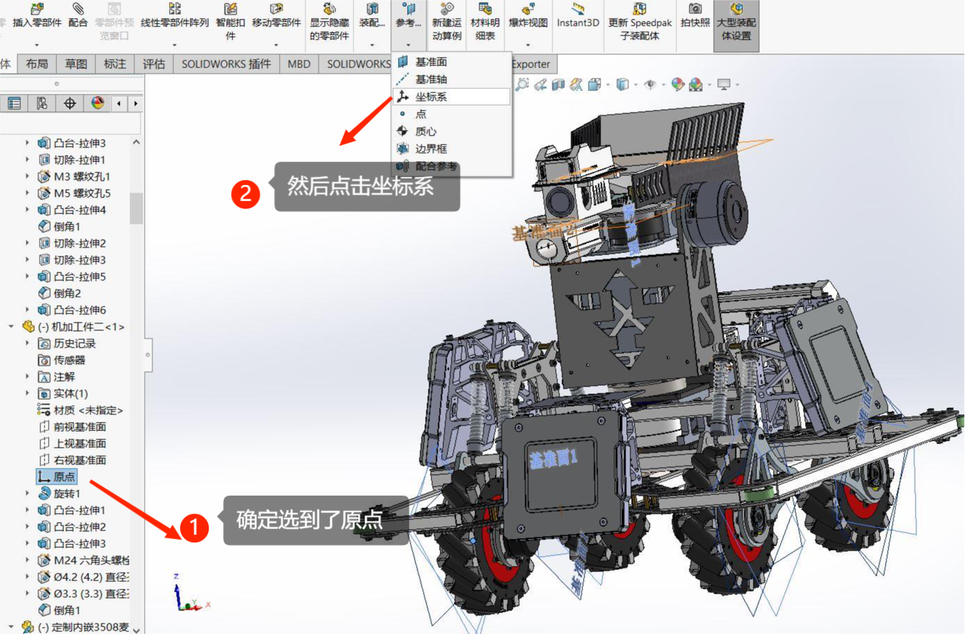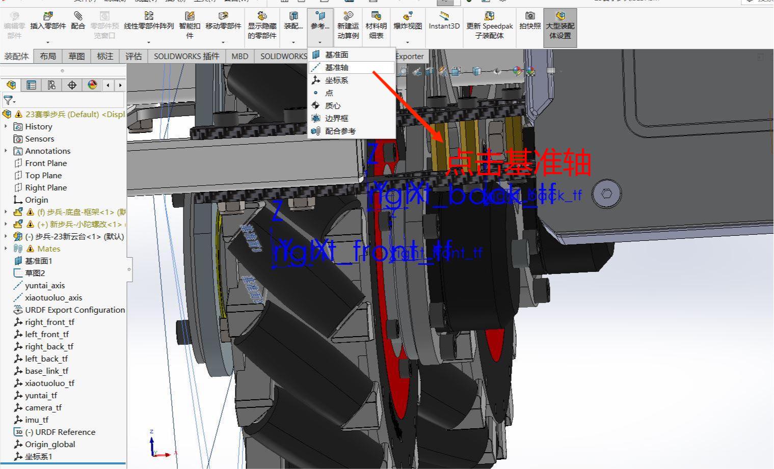 相较于设定坐标轴,这一步会更加简单,通过SolidWorks中旋转轴的设定,即可完成