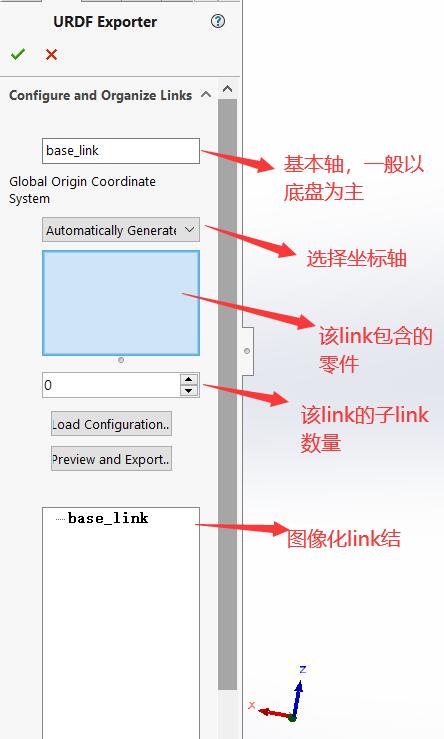 3. 设定每一个link的坐标轴,以及基准轴